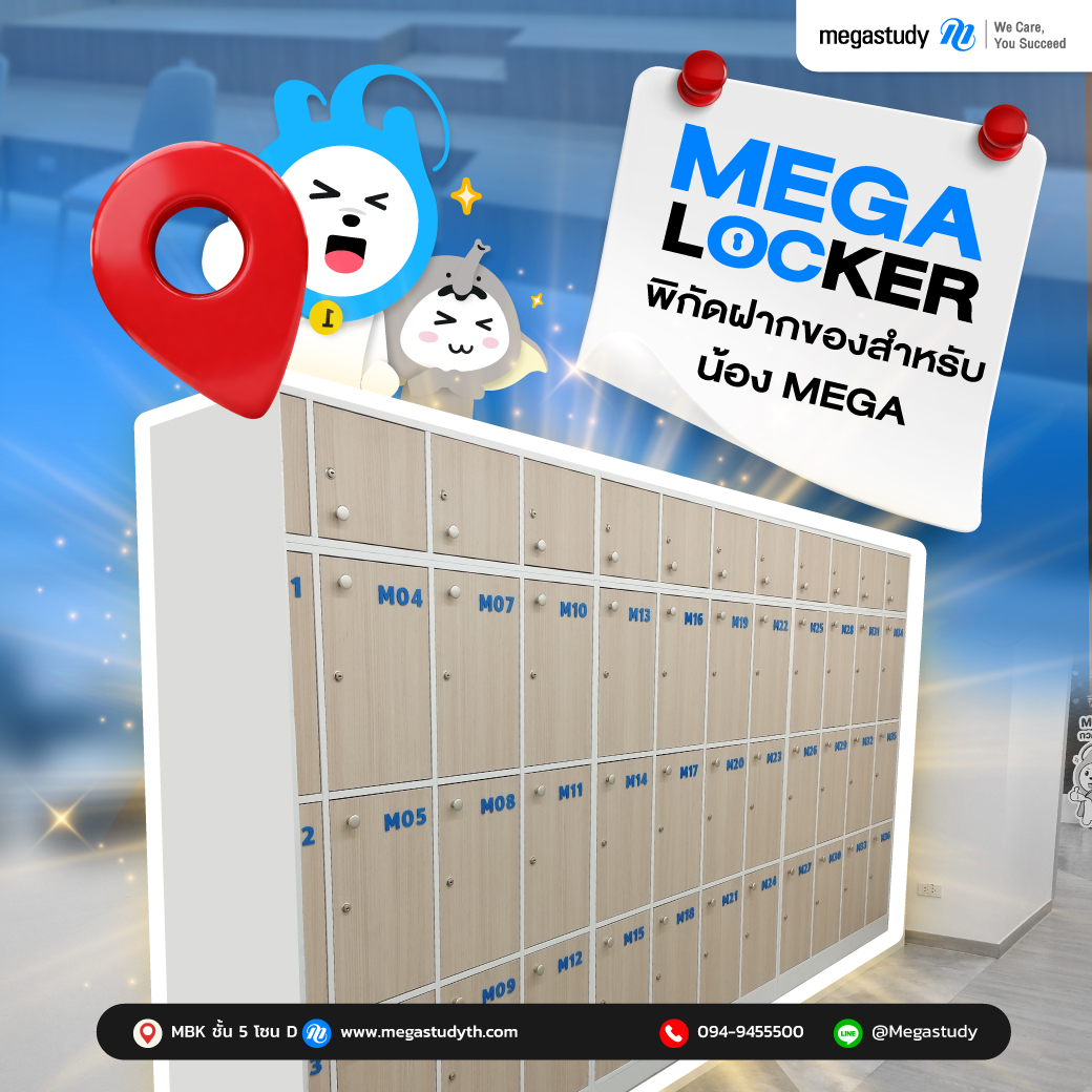 นักเรียนที่ซื้อคอร์สเรียนแบบ Onsite ที่ Megastudy เท่านั้น จึงจะสามารถใช้สิทธิ์ MEGA LOCKER ได้