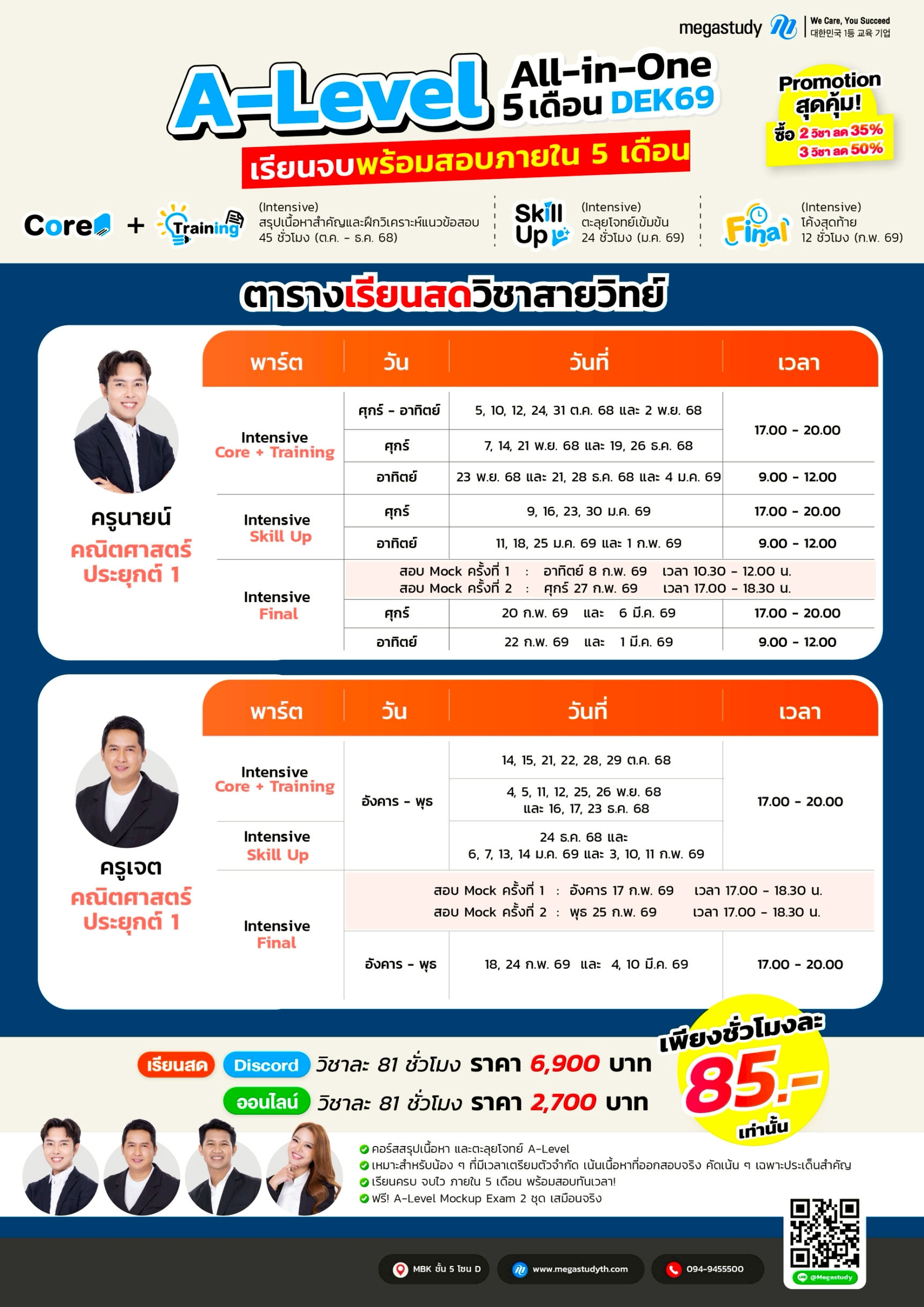 คอร์สใหม่ A-Level All in One 5 เดือน #DEK69