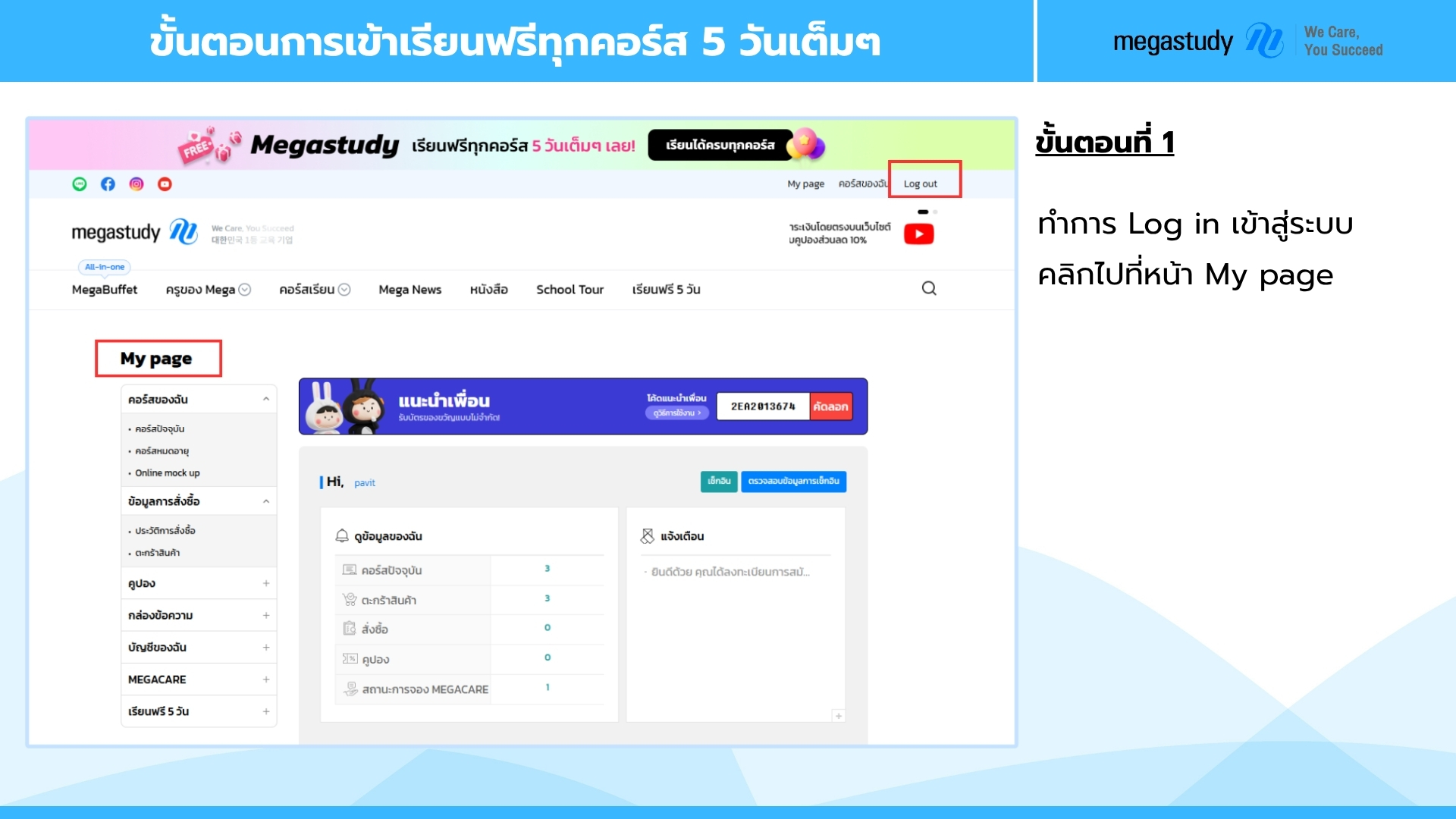 Megastudy เปิดโอกาสให้สำหรับลูกค้าใหม่ที่ยังไม่เคยเรียนกับสถาบัน ทดลองเรียนออนไลน์ฟรี 5 วัน