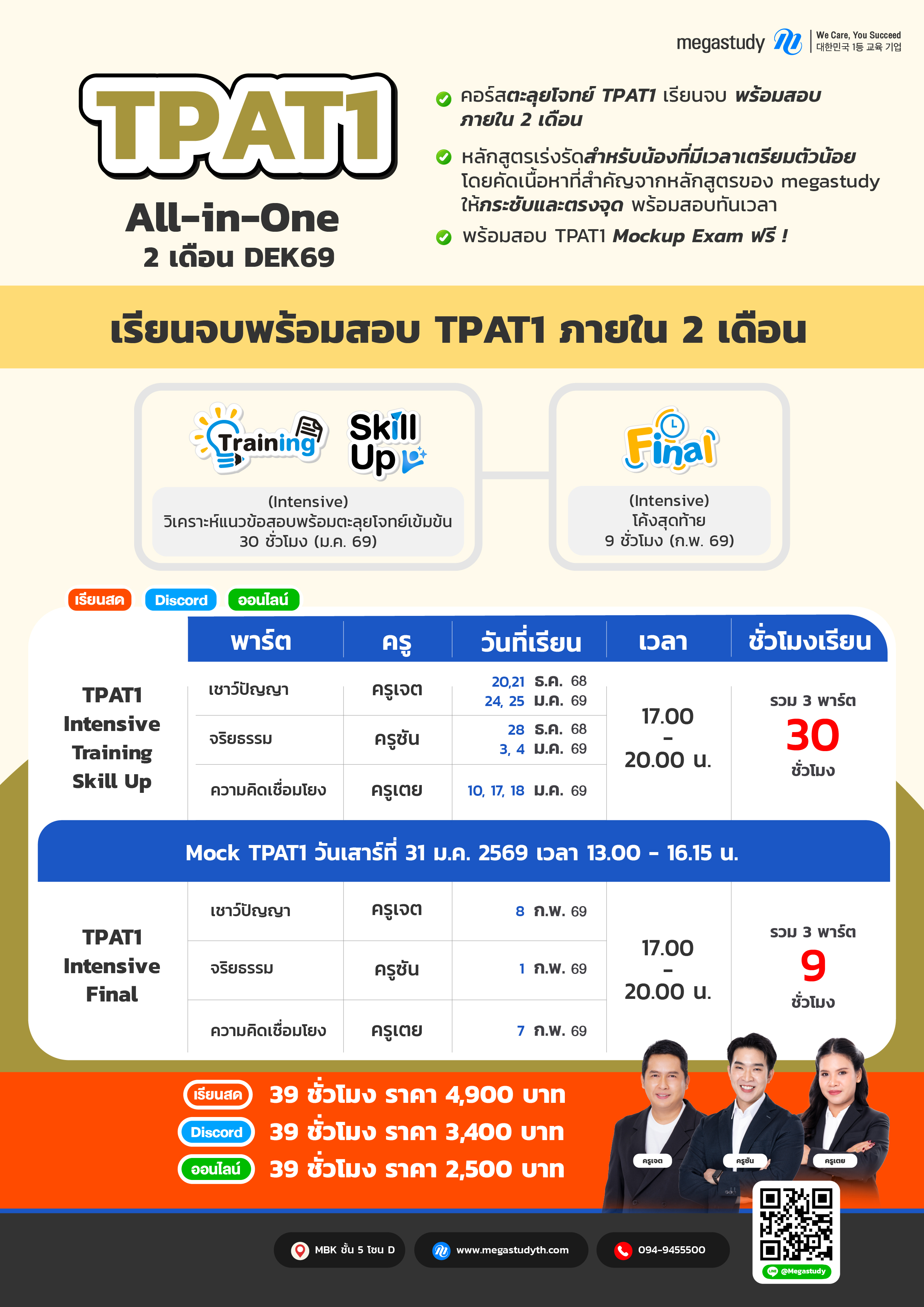 #TPAT1 #ติวแพทย์ #เตรียมสอบTCAS #megastudy #megastudyth #คอร์สเรียนออนไลน์ #ติว #ตะลุยโจทย์ #ติวเตอร์ระดับประเทศ #สอบเข้ามหาลัย #DEK69 #TCAS69