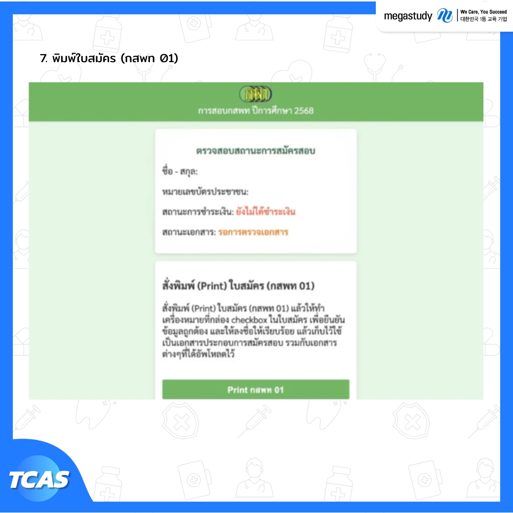 7. พิมพ์ใบสมัคร (กสพท 01)