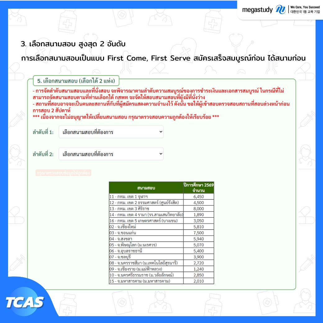 3. เลือกสนามสอบ สูงสุด 2 อันดับ *รีบสมัครให้เสร็จนะ เพราะระบบการเลือกสนามสอบเป็นแบบ First Come, First Serve สมัครเสร็จสมบูรณ์ก่อน ได้สนามก่อน!