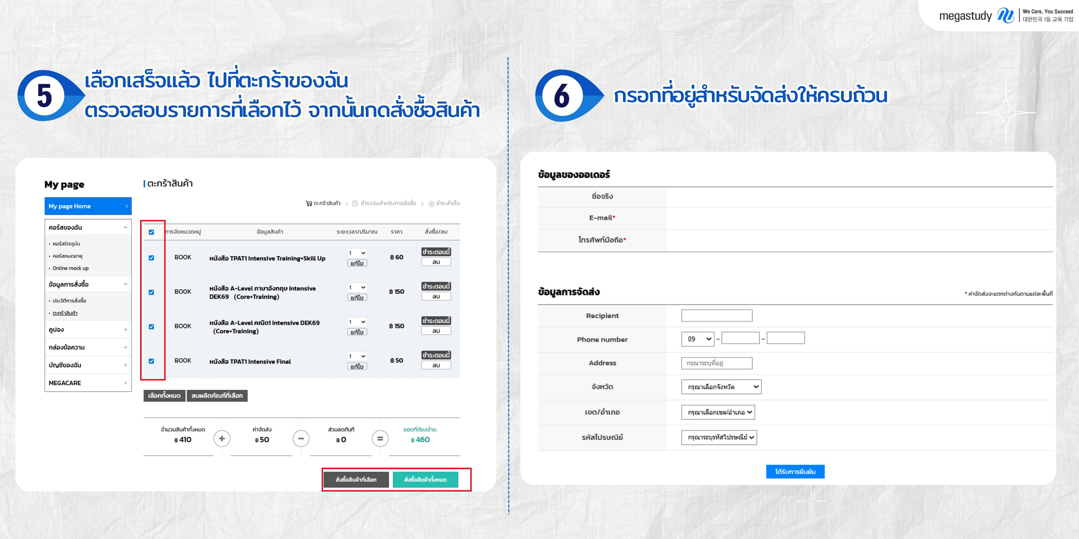 5. กลับไปที่ตะกร้าของฉัน ตรวจสอบรายการที่เลือกไว้ จากนั้นกดสั่งซื้อสินค้า