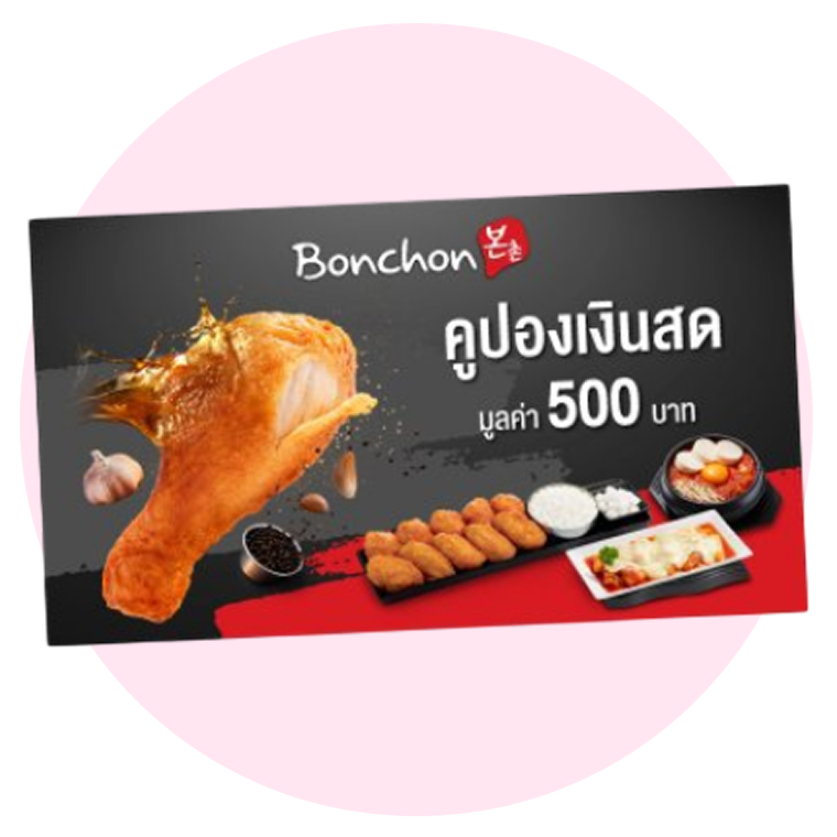 Check-in ครบ 30 ครั้ง รับทันที ! Bonchon Gift Voucher มูลค่า 500 บาท