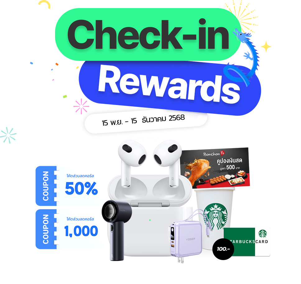 Check-in ครบ 20 ครั้ง แจกคูปอง Starbucks มูลค่า 100 บาท จำนวน 50 รางวัล