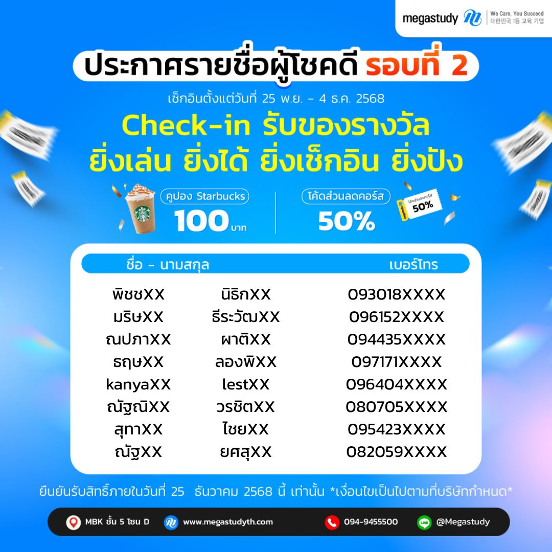 📣 ประกาศรายชื่อผู้โชคดี รอบที่ 2