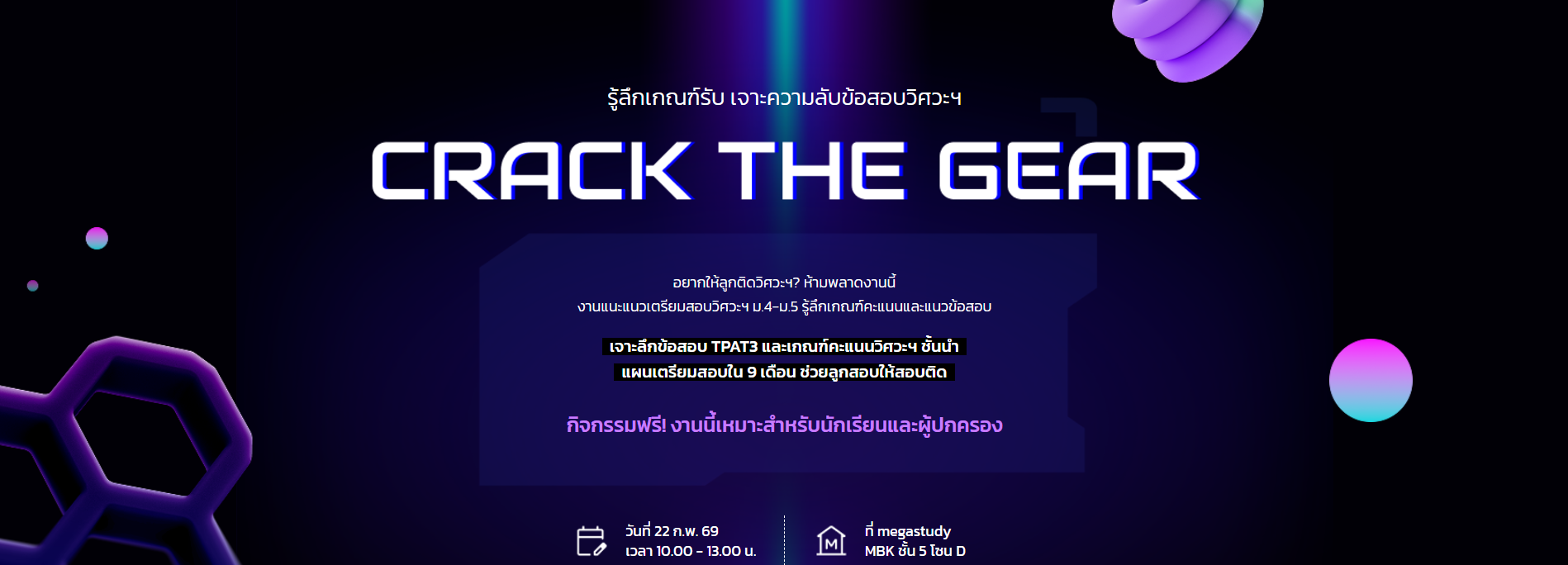 🎯วันที่ 22 ก.พ. 69 📌เวลา 10.00 - 13.00 น ที่ megastudy MBK ชั้น 5 โซน D