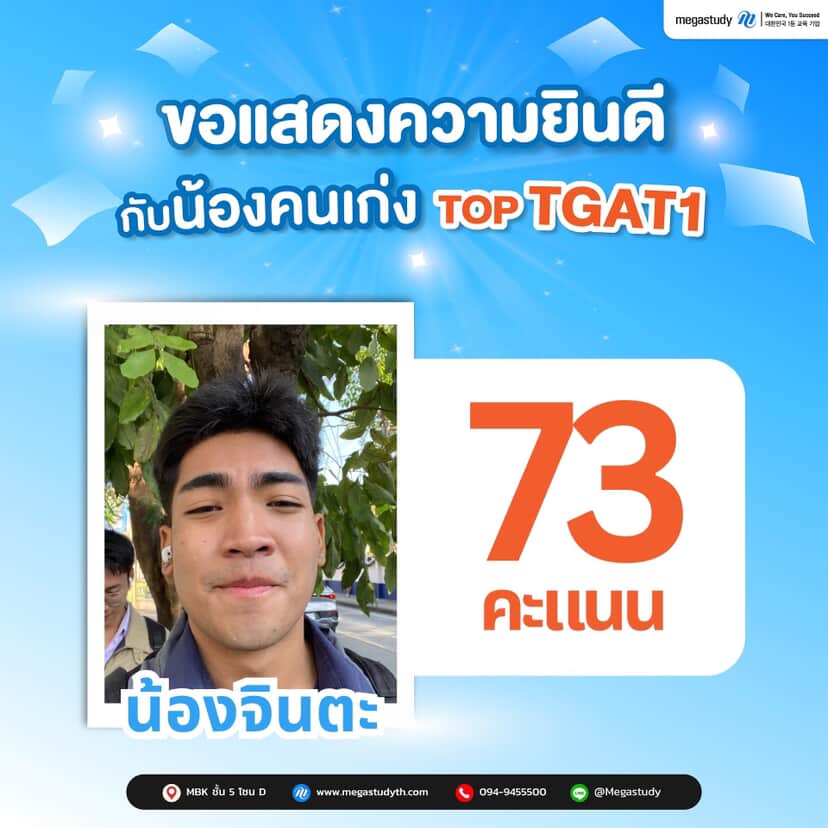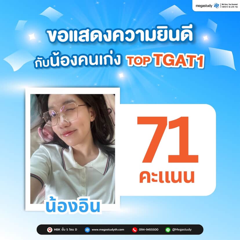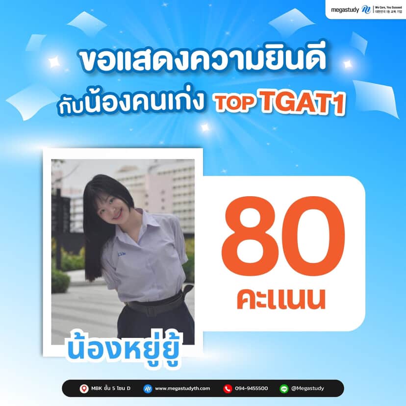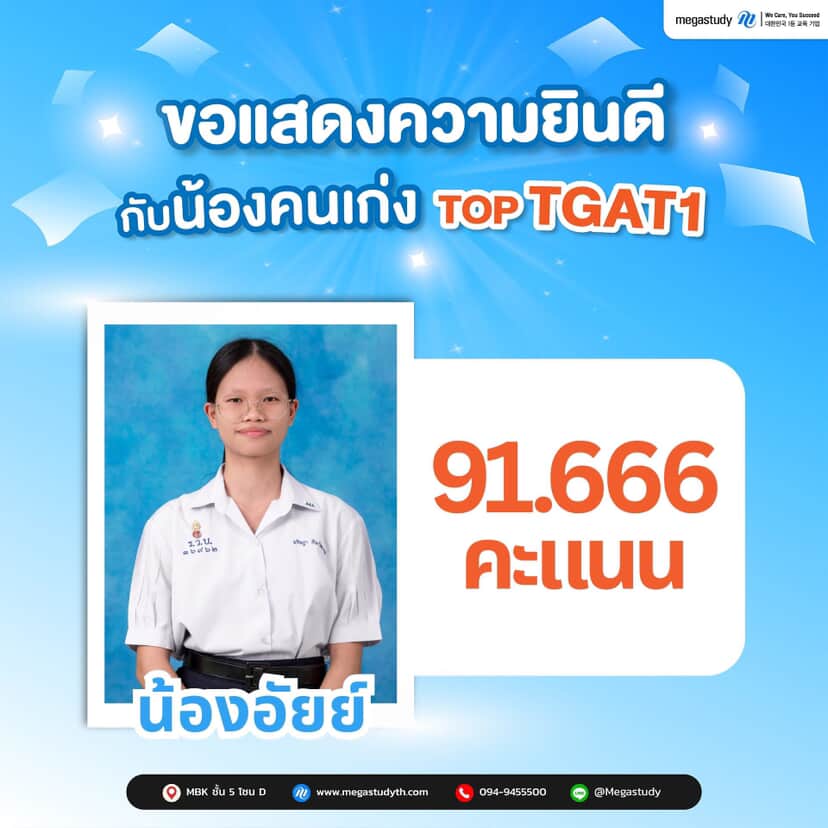TOP TGAT1 ผลงานจริง | คะแนนสูงจากนักเรียน Megastudy