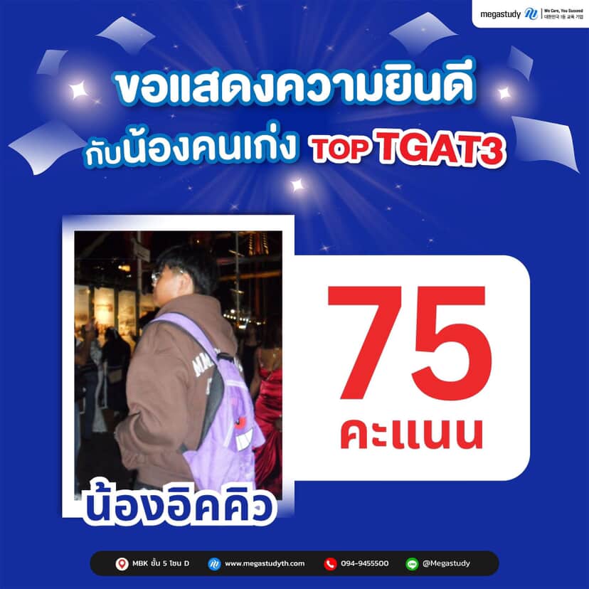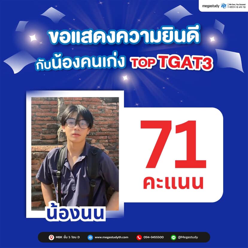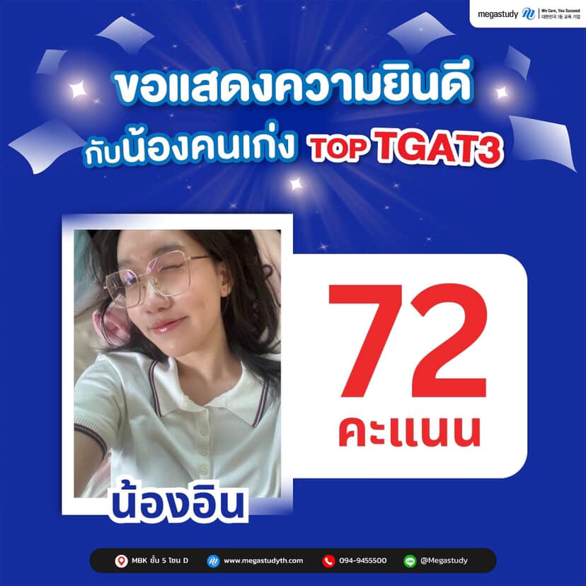 TOP TGAT3 ผลงานจริง | คะแนนสูงจากนักเรียน Megastudy