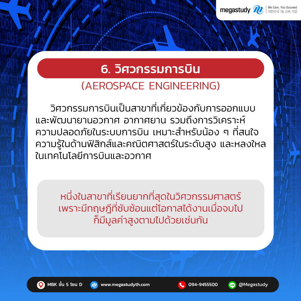 6. วิศวกรรมการบิน (Aerospace Engineering)