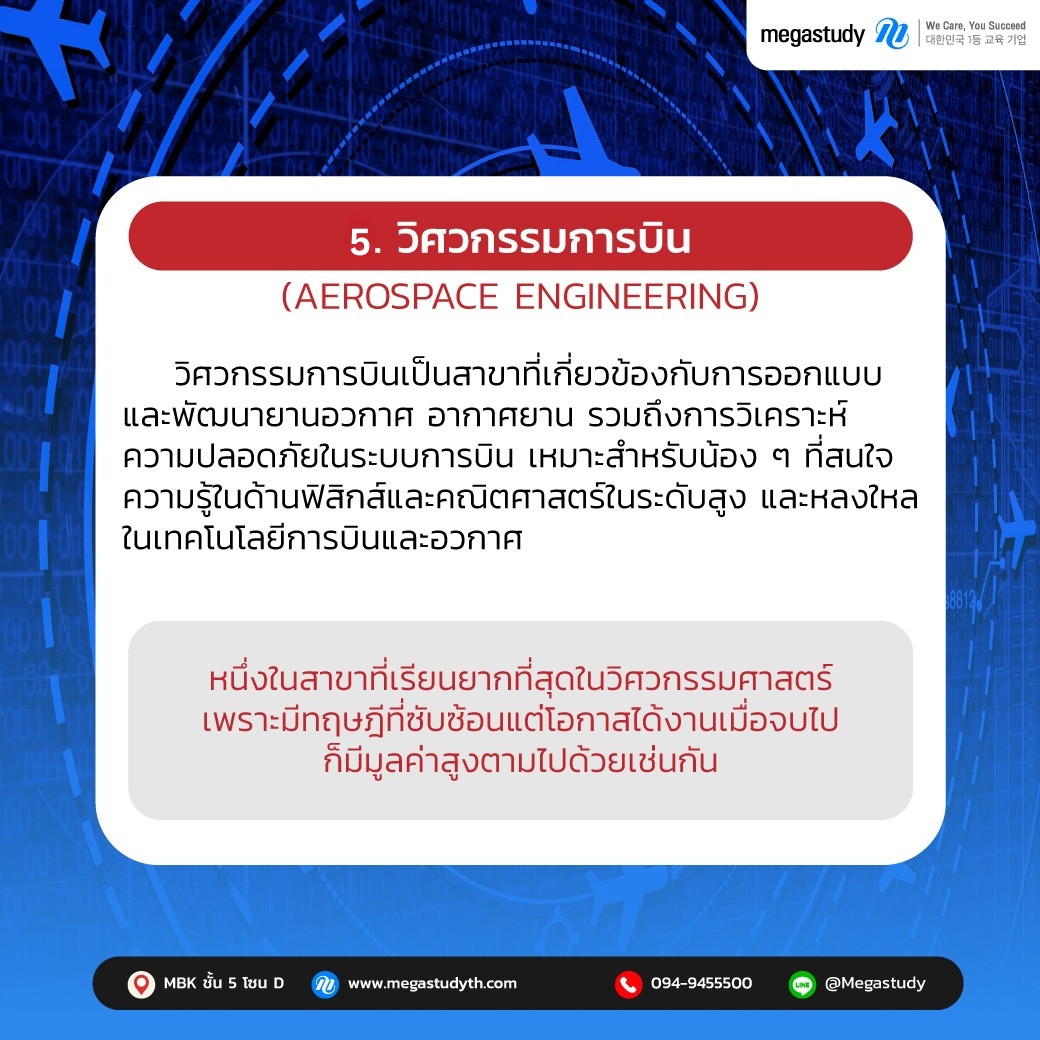 5. วิศวกรรมการบิน (Aerospace Engineering)