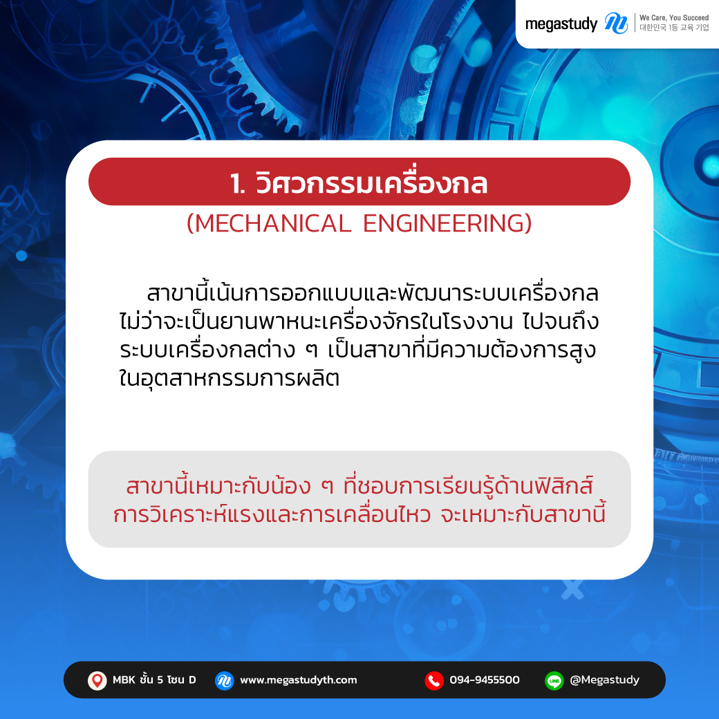 1. วิศวกรรมเครื่องกล (Mechanical Engineering)