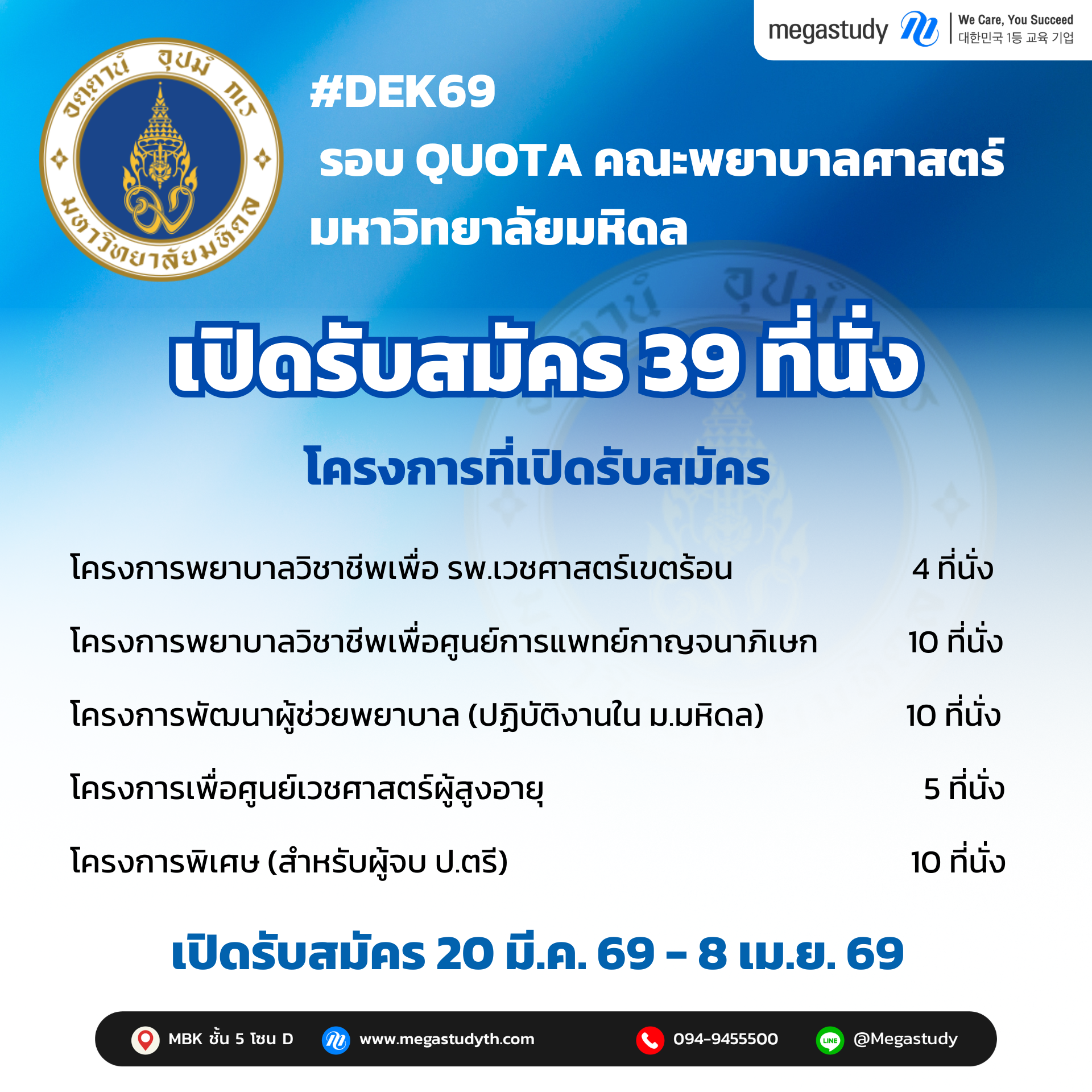 พยาบาล มหิดล TCAS69 รอบ 2 รับ 39 ที่นั่ง! 👩⚕️🚑