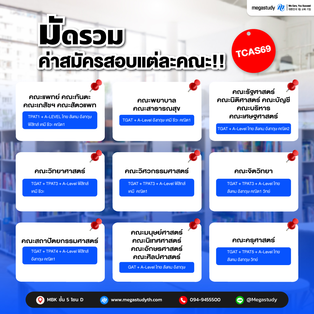 น้องๆสนใจอยากสอบเข้าคณะไหน หรือมหาวิทยาลัยไหน เก็บไว้เป็นลิสต์แล้วเตรียมตัวสอบได้เลย พี่ๆเมก้าเป็นกำลังใจให้น้องๆเด็ก 69 ทุกคนนะคะ
