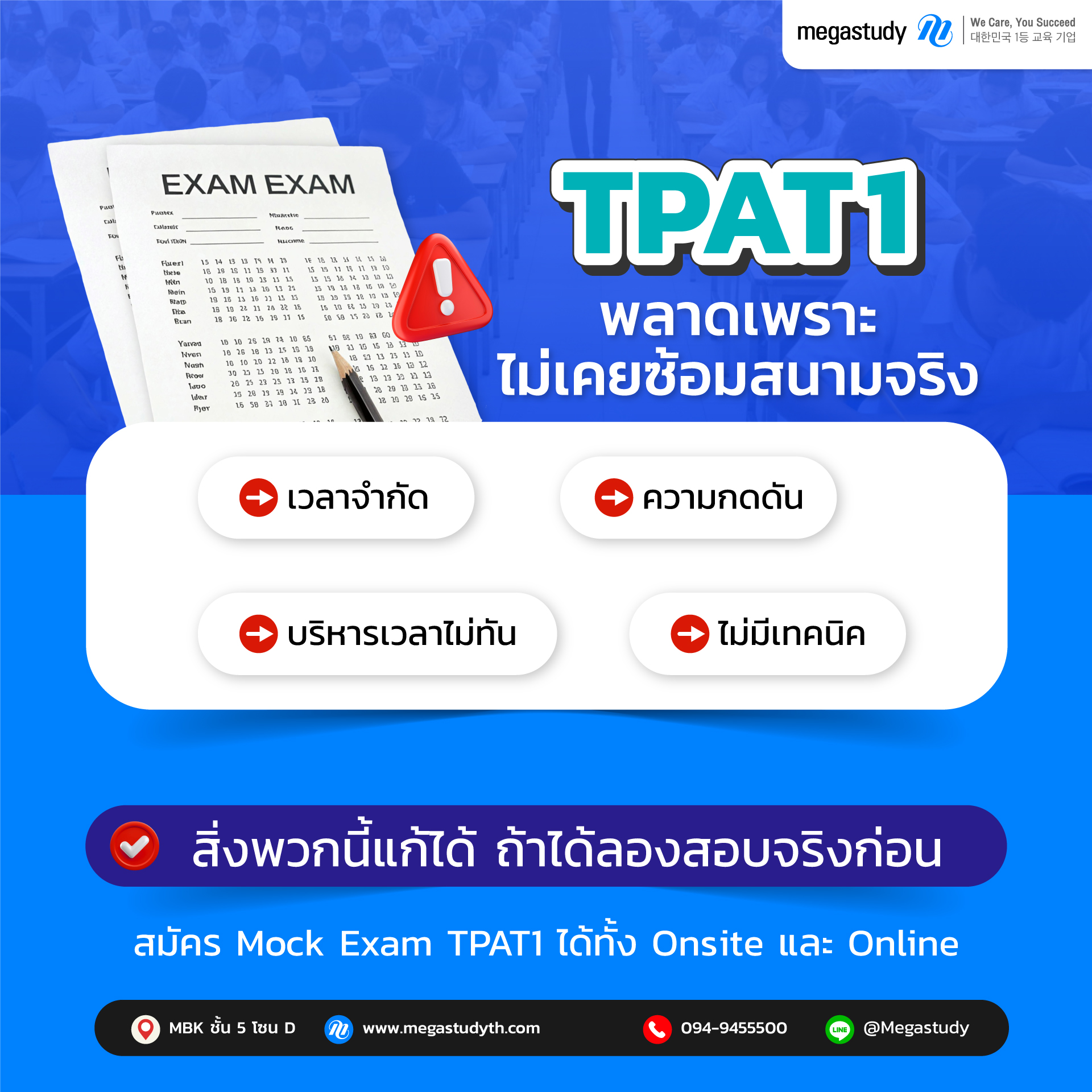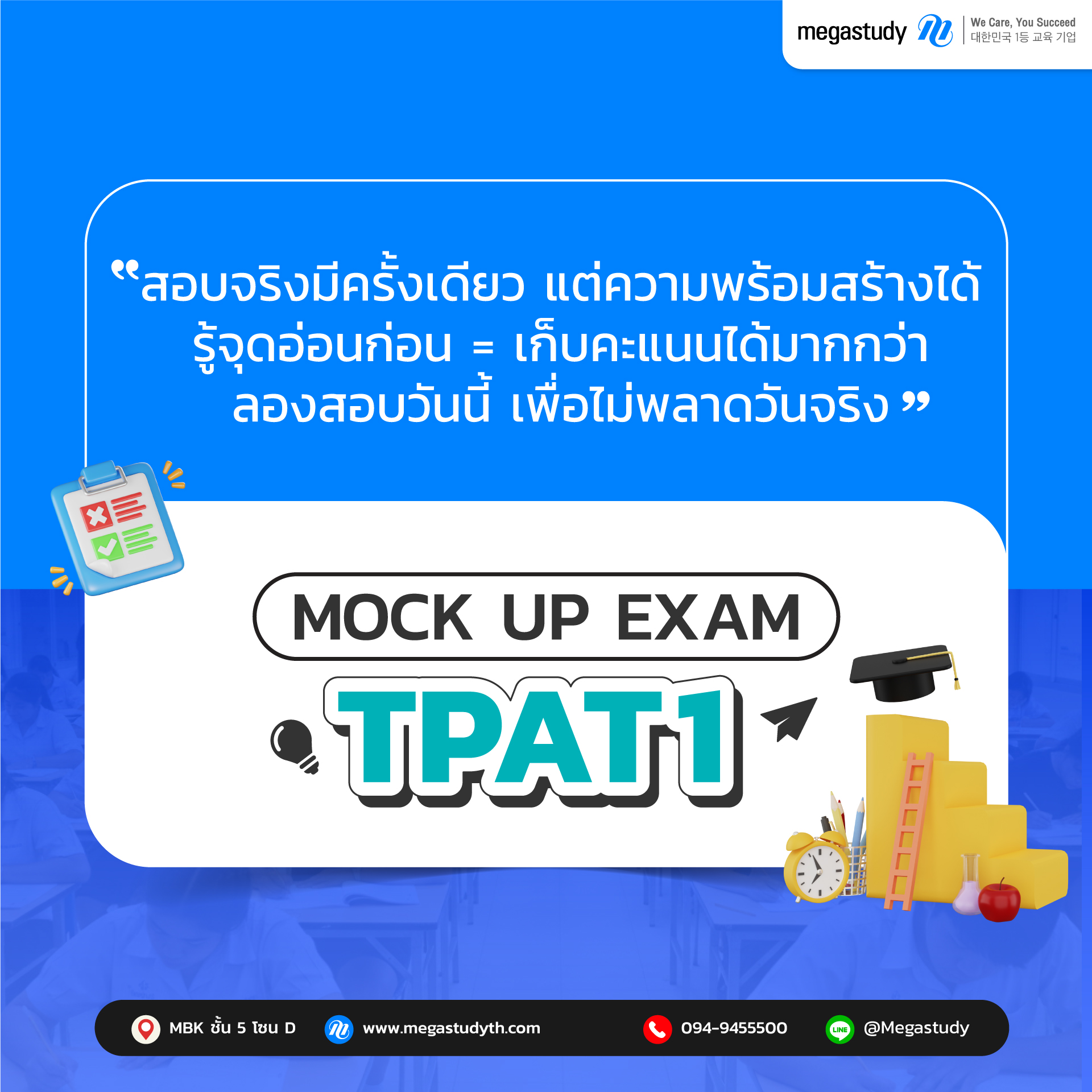 ห้ามพลาด!! ถ้าน้องๆอยากรู้ระดับความพร้อมของตัวเอง อยากซ้อมจับเวลาแบบจริงจัง และอยากเพิ่มความมั่นใจก่อนวันสอบ ซ้อมก่อนได้เปรียบกว่า อย่ารอให้พลาดในสนามจริง มาเช็กตัวเองก่อนที่ Mock Up Exam TPAT1