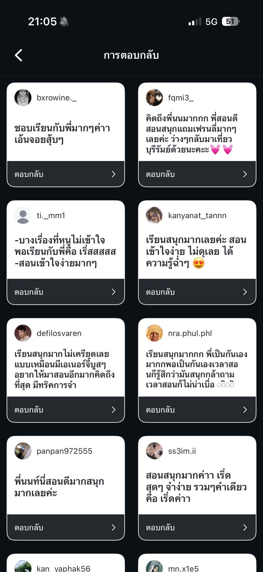 บทสนทนาใน SNS ของนักเรียนและติวเตอร์