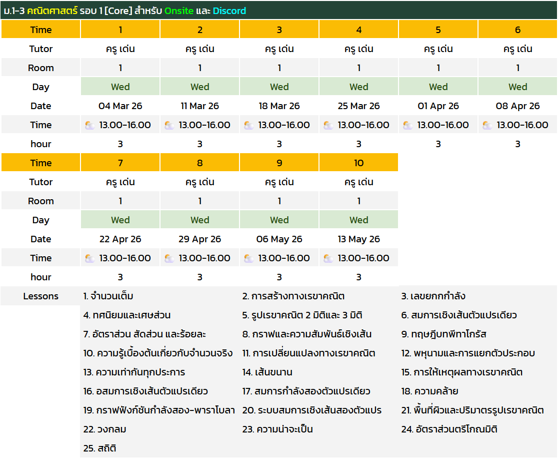 • ม.1-3 คณิตศาสตร์ รอบ 1 [Core] [Onsite]
